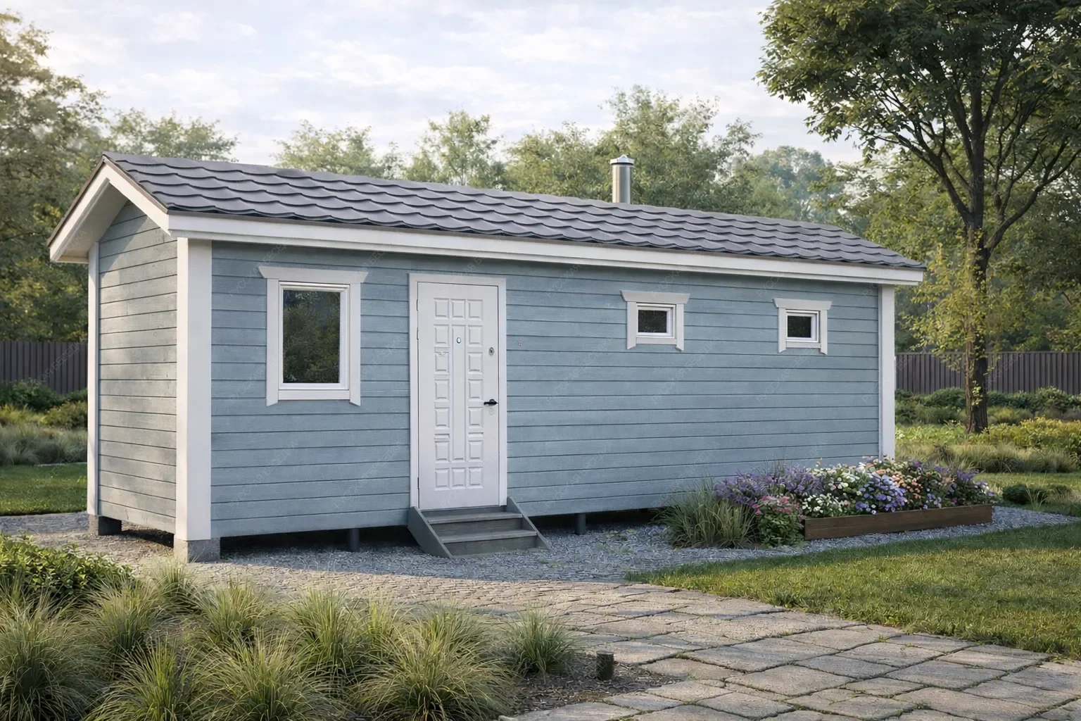Мобильная баня «Здрава» с габаритами 7х2.3 метра предлагает полноценное трёхзональное пространство площадью 16.1 кв.м. под традиционной двухскатной кровлей. Несмотря на компактную ширину, внутренняя планировка продумана до мелочей, включая всё необходимое для комфортного посещения: функциональную парную, отдельную душевую и практичную раздевалку. Линейное расположение помещений создаёт логичный и эргономичный маршрут движения, от парной к душевой и далее в зону для переодевания, что максимально эффективно использует каждый сантиметр площади. Двухскатная крыша обеспечивает устойчивость конструкции и способствует быстрому отводу осадков. Ключевым преимуществом модели является её полная мобильность, позволяющая установить готовый комплекс на участке за считанные дни без тяжёлого фундамента. Это идеальное решение для временного использования, небольших территорий или в качестве гостевой парной, где важны оперативность монтажа, автономность и сохранение всех этапов классического банного ритуала.