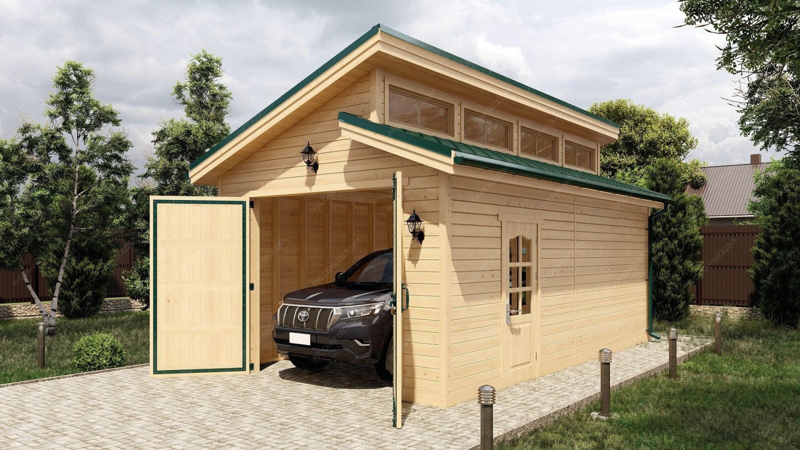 Деревянный гараж — это не только удобное и функциональное сооружение, но и отличная возможность дополнить архитектурный стиль вашего участка. Деревянные конструкции остаются вечной классикой, так как дерево — экологически чистый и натуральный материал. Одним из основных преимуществ деревянных гаражей является их доступная цена, что делает их более выгодным вариантом по сравнению с постройками из других материалов. При правильном строительстве деревянный гараж может служить десятилетиями, сохраняя все свои свойства и привлекательный внешний вид. Мы заботимся о качестве наших конструкций, обрабатывая древесину надёжными пропитками, которые защищают от гниения и плесени. Огнебиозащитные средства обеспечивают устойчивость к влаге, ультрафиолетовому излучению, перепадам температуры и другим атмосферным воздействиям. Кроме того, мы можем предложить утепление гаража, учитывая важность пароизоляции для сохранения тепла и защиты конструкции. Индивидуальное проектирование позволит вам точно вписать гараж в экстерьер вашего участка и оптимально спланировать внутреннее пространство для удобства использования. Создайте идеальное место для хранения вашего автомобиля и оборудования с нашим деревянным гаражом!