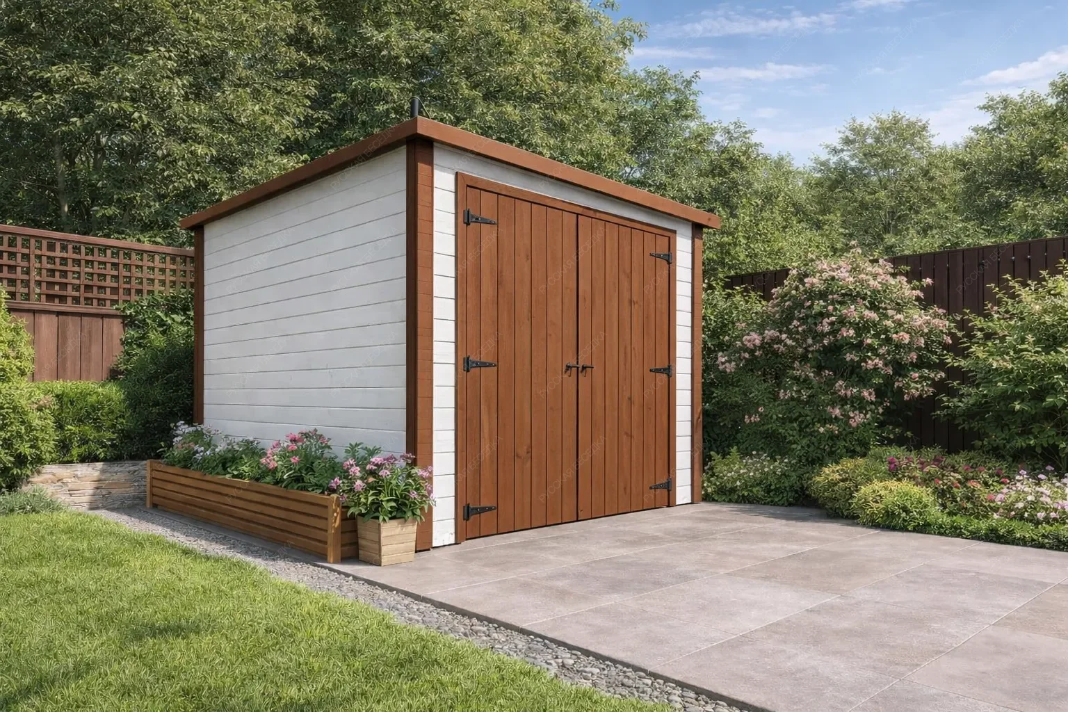 Деревянный гараж для мотоциклов и квадроциклов — это специализированное сооружение, созданное для надёжного хранения мототехники и сопутствующего оборудования. Прочная конструкция из натуральной древесины обеспечивает оптимальный микроклимат внутри: материал дышит, предотвращая скопление влаги и образование коррозии на металлических деталях, а также защищает от резких перепадов температур. Это идеальная среда для сохранения работоспособности двигателей, ходовой части и внешнего вида техники в межсезонье и во время длительного простоя. Внутреннее пространство организовано с учётом потребностей владельца: предусмотрены полки и стеллажи для размещения шлемов, защитной экипировки, инструментов, запасных частей и расходных материалов. Всё необходимое всегда под рукой, а порядок внутри гаража позволяет быстро подготовиться к выезду или провести техническое обслуживание. Продуманная система хранения исключает беспорядок и экономит время. Внешний вид строения гармонично вписывается в любой ландшафт, будь то загородный участок или территория загородного дома. Древесина придаёт естественность и экологичность, а при желании гараж может быть окрашен в любой цвет или покрыт защитными составами для увеличения срока службы. Конструкция рассчитана на высокие нагрузки, устойчива к ветру и осадкам, что гарантирует сохранность мотоциклов и квадроциклов даже в суровых погодных условиях. Инвестиция в такой гараж — это вложение в долговечность техники и собственное спокойствие.