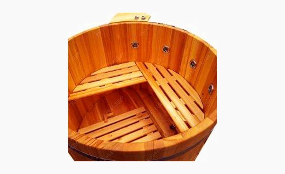 Подбираете купель для установки в помещении? Присмотритесь к этой купели, ее можно разместить и в углу, и просто у стены. Для изготовления купели выбран прекрасный материал – кедровая древесина. Она известна стойкостью к воздействию влаги, перепадов температур. Не страшны ей также бактерии и насекомые. А еще, кедровая древесина славится очень приятным ароматом и целебными свойствами. Что, как вы понимаете, очень важно для банной купели. Угловая кедровая купель оснащена всем необходимым для полезных и приятных процедур, в ней уже установлены сиденья, трапики, система слива воды.