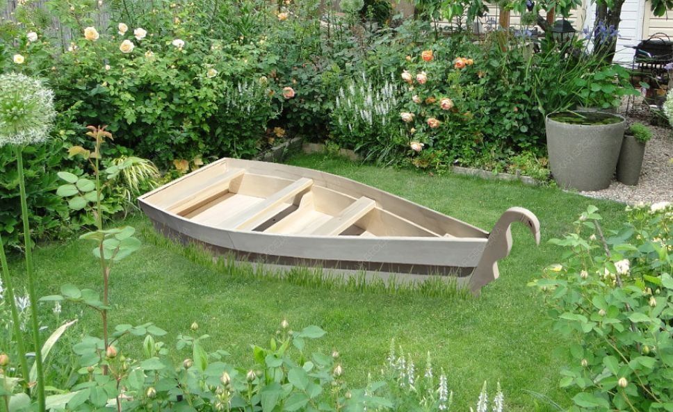 Лодка для уличного размещения как элемент ландшафтного дизайна бесспорно будет центром внимания всех окружающих. Изделие не предназначено для спуска на воду, её функция сугубо декоративная. Декоративные деревянные лодки обычно устанавливаются вблизи домов, используются как цветочники для посадки цветов, являются частью оформления загородных домов, ресторанов и летних кафе.