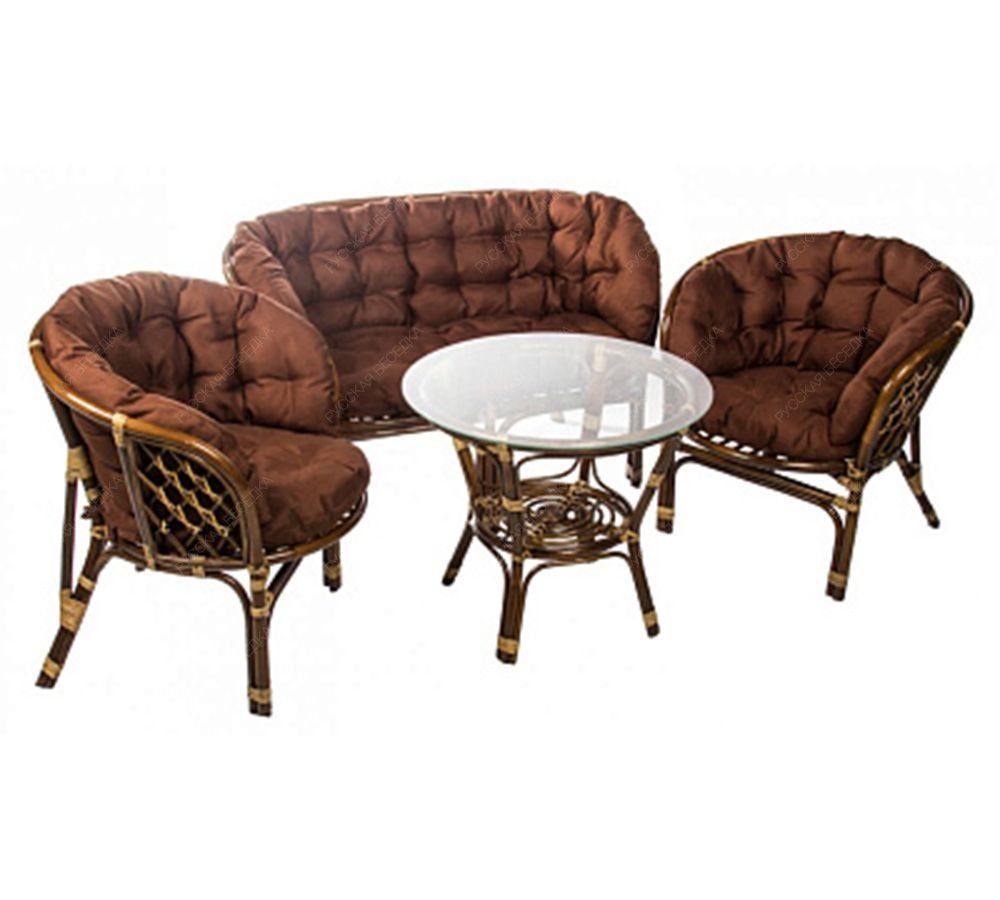 Дополнительно Класс ротанга А. Глубина сиденья 52см, высота от пола до сиденья 40см. Подушки упакованы в полиэтиленовый пакет по 2 штуки (спинка+сиденье). Чехлы не съемные, материал влагоотталкивающий, сухая чистка