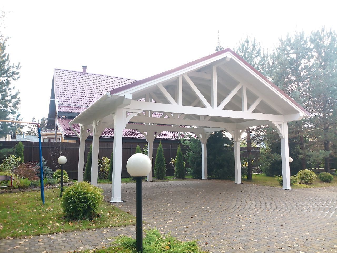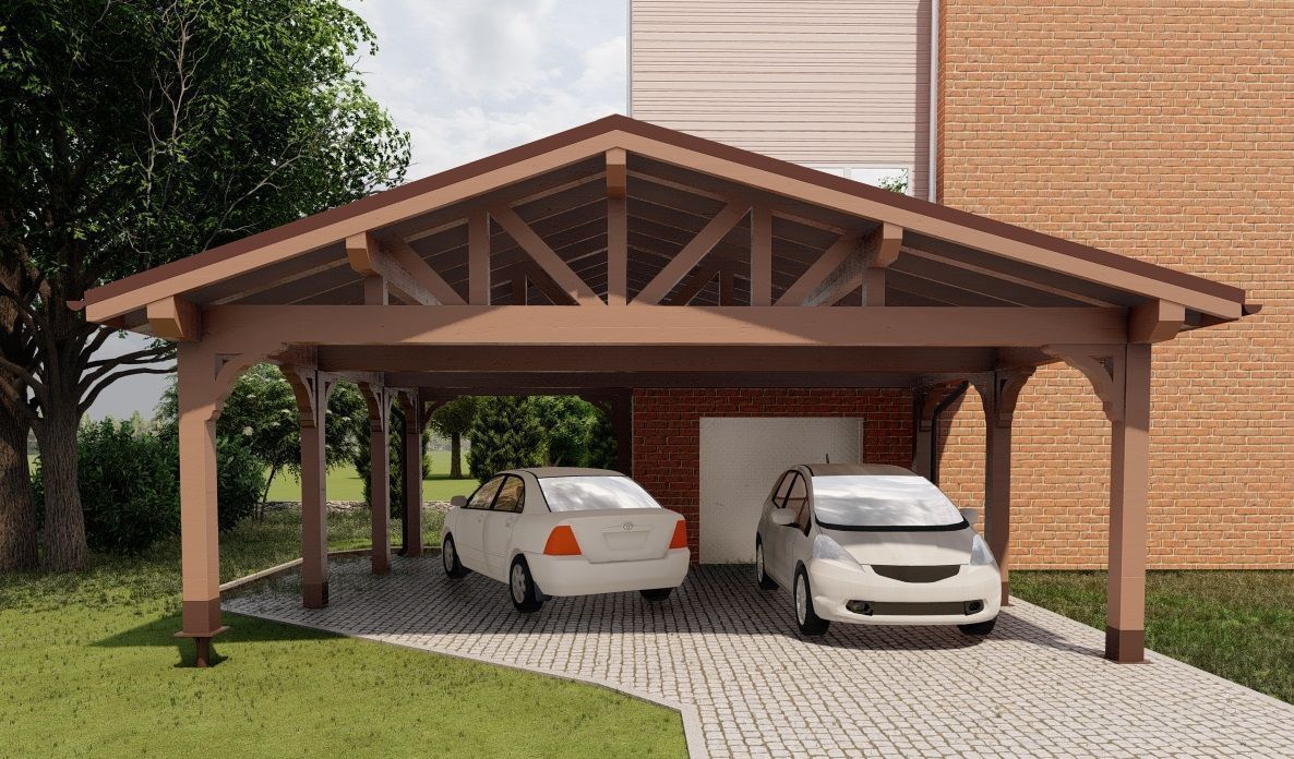 Навес из дерева послужит отличным парковочным местом для одного или нескольких автомобилей.