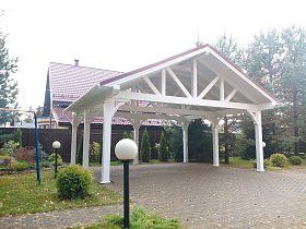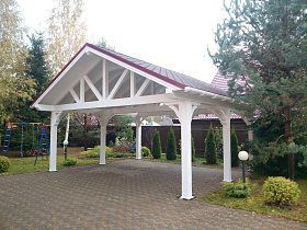 Участок возле собственного дома, дачи или любого другого частного домостроения не обходится без малых архитектурных форм. Удачным приобретением станет деревянный навес для автомобиля. Навес может быть полностью автономной конструкцией с классическими архитектурными формами или же, выполненный в виде пристройки к дому. Конструкция изящно впишется в планировку любого дачного участка.