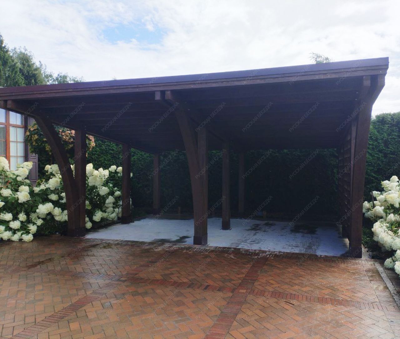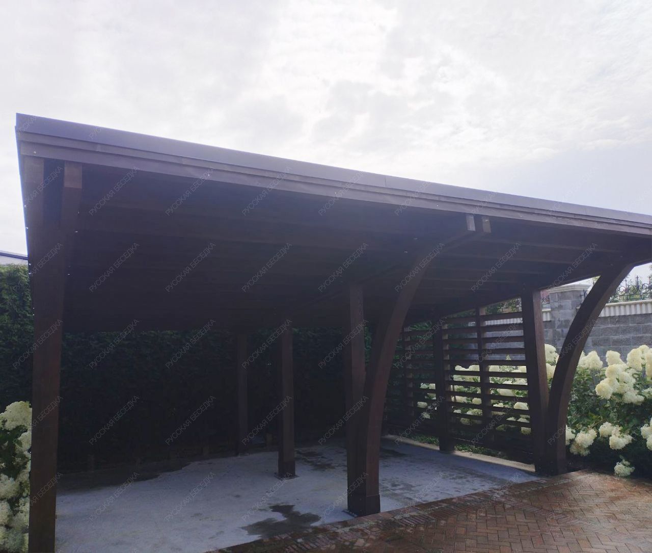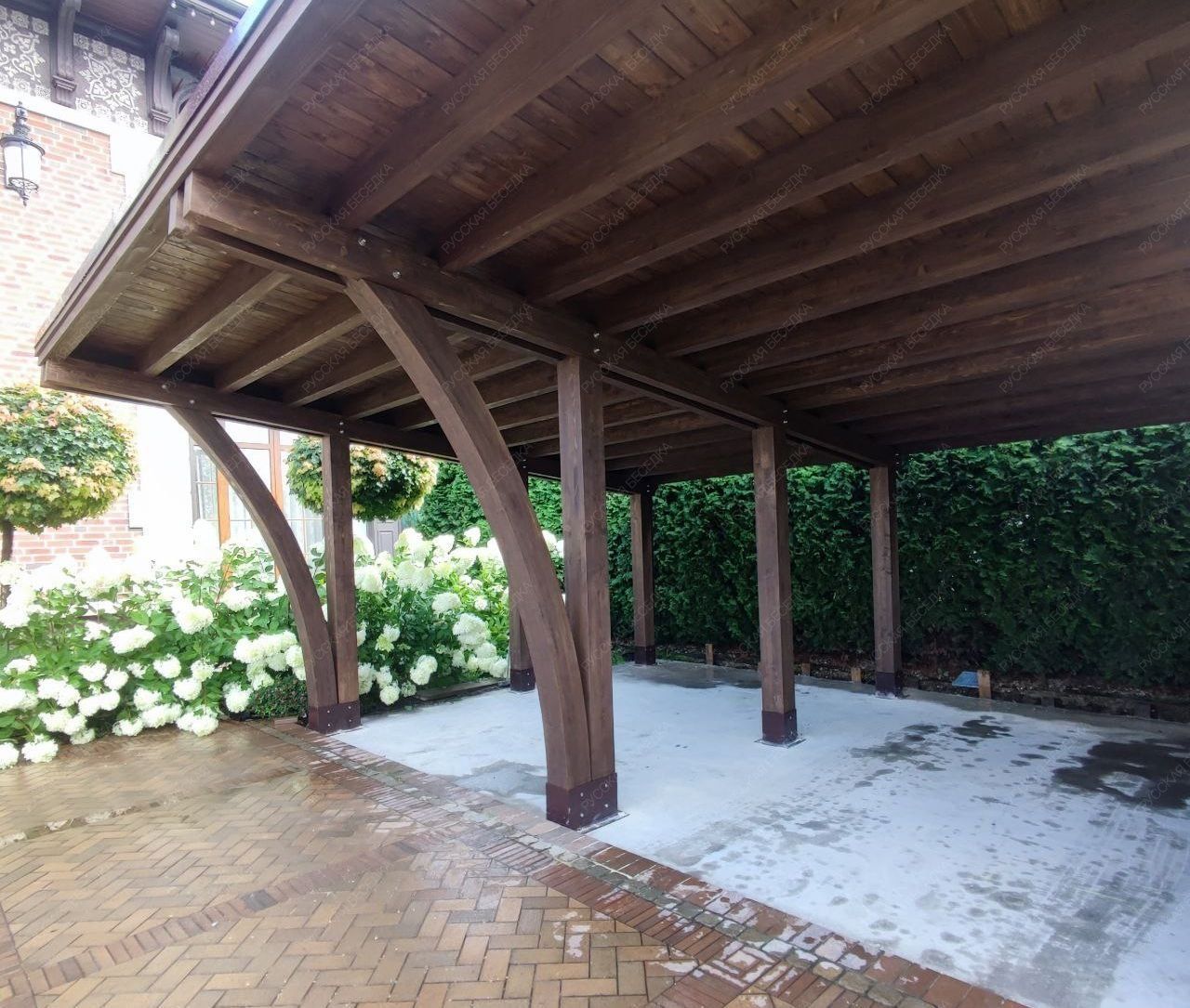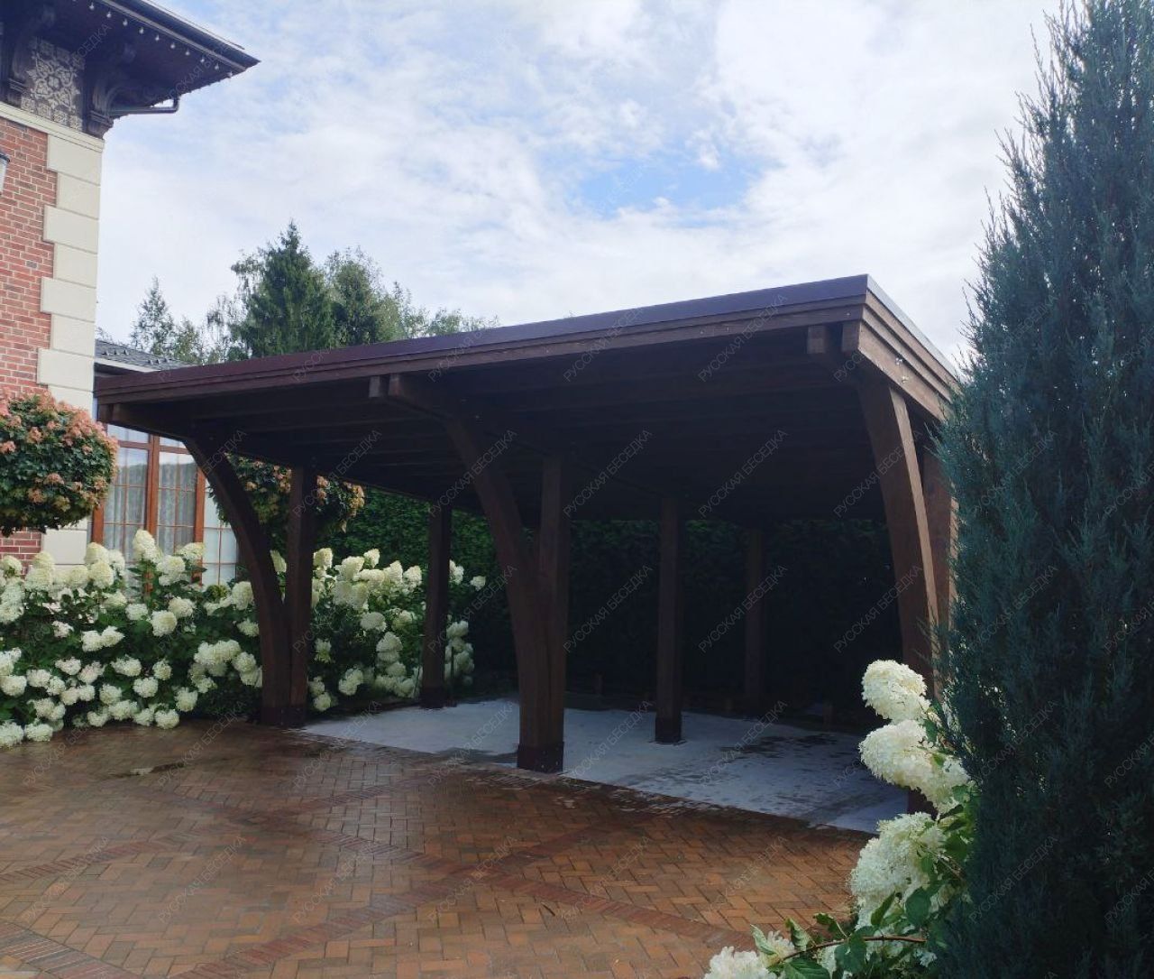 Навес из дерева послужит отличным парковочным местом для одного или нескольких автомобилей.