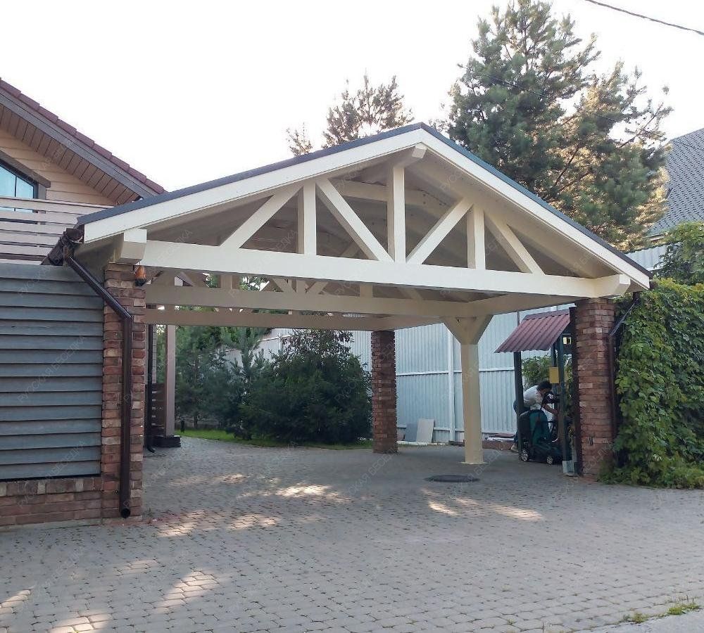 Навес из дерева послужит отличным парковочным местом для одного или нескольких автомобилей.