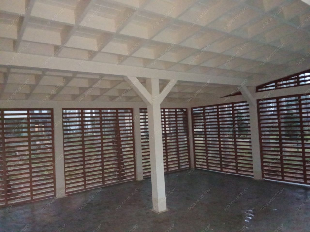 Для производства всех элементов навеса используется только отборная древесина без малейших дефектов, прошедшая камерную сушку и пропитку антисептиками. Навесу после защитной обработки лаком не страшны высокая влажность, а значит, можно быть уверенным, что дерево не растрескается, не разбухнет и не покоробится.