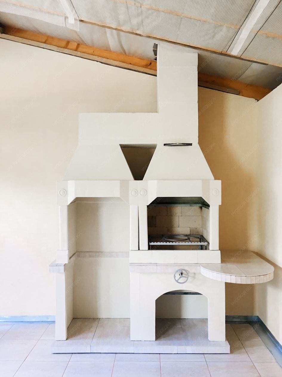 Уже упомянутая небольшая столешница отделана плиткой. Это самый практичный материал для уличного комплекса барбекю. Чтобы его очистить, достаточно воспользоваться любым моющим средством. Плитка не впитывает влагу, быстро высыхает, не держит запахи — и это очень удобно.