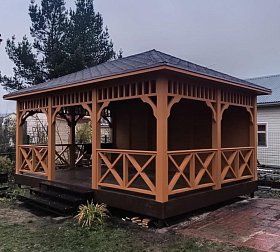Беседка выполненная из лучших пород древесины, прослужит долгие годы и не потребует особого ухода и обслуживания. Специальные лакокрасочные материалы которые мы используем, предотвратят старение, гниение и заражение грибком конструкции кухни. Используемая огнебиозащита образует полупрозрачное полуматовое покрытие, стойкое к влаге, УФ-излучению, перепадам температуры и другим атмосферным воздействиям.