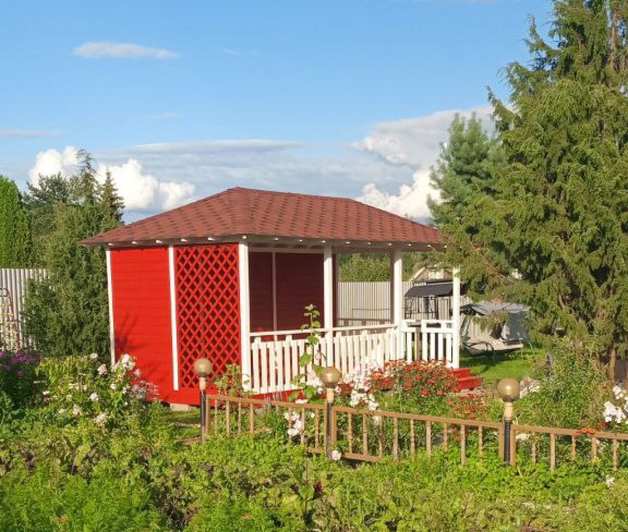 Современный ландшафтный дизайн и беседки - центральные элементы загородного участка. Беседка должна размещаться в таком месте участка, где вам будет комфортно находиться, а также она должна отвечать своему назначению и притягивать взгляды. Беседка является уникальным строением, с ее помощью можно отдохнуть за чашечкой кофе, укрыться от знойного солнца или провести шумный праздник в кругу семьи и друзей.