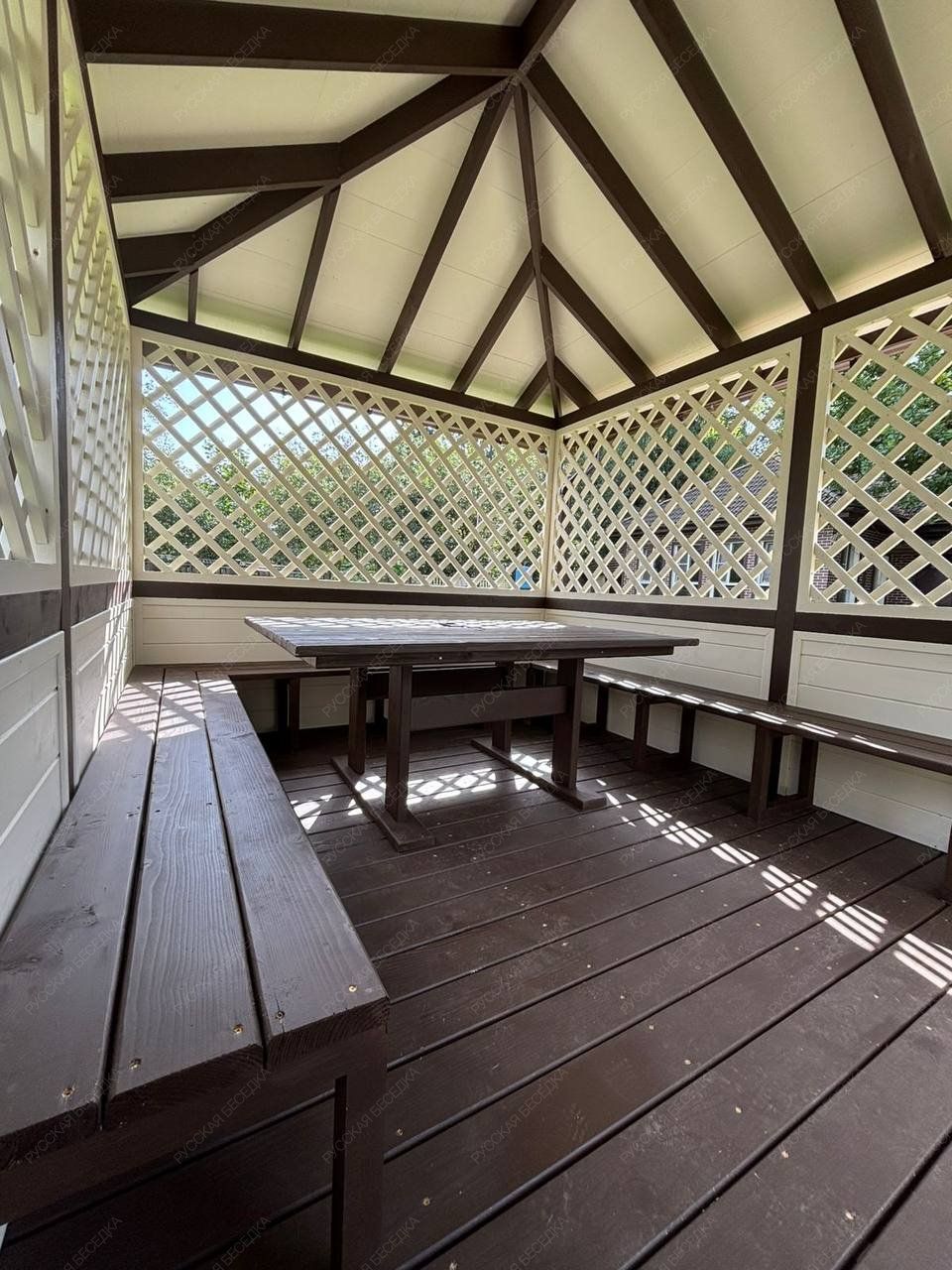 Беседка выполненная из лучших пород древесины, прослужит долгие годы и не потребует особого ухода и обслуживания. Специальные лакокрасочные материалы которые мы используем, предотвратят старение, гниение и заражение грибком конструкции кухни. Используемая огнебиозащита образует полупрозрачное полуматовое покрытие, стойкое к влаге, УФ-излучению, перепадам температуры и другим атмосферным воздействиям.