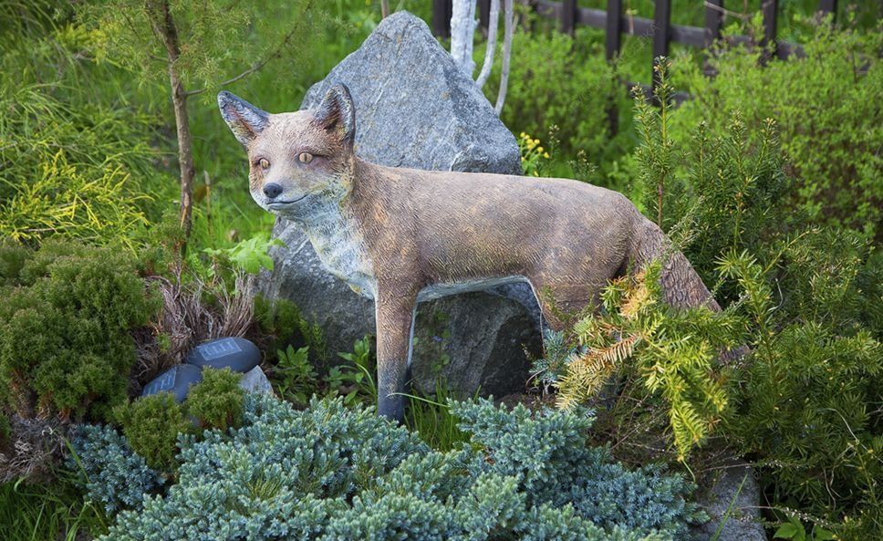 Садовая фигура Лиса, повышенной прочности, изготовлена из стеклопластика с добавлением полиэфирной смолы. Это лучший материал для изготовления садовых фигур на сегодняшний день! высота 50, длина 90, ширина 30 см.