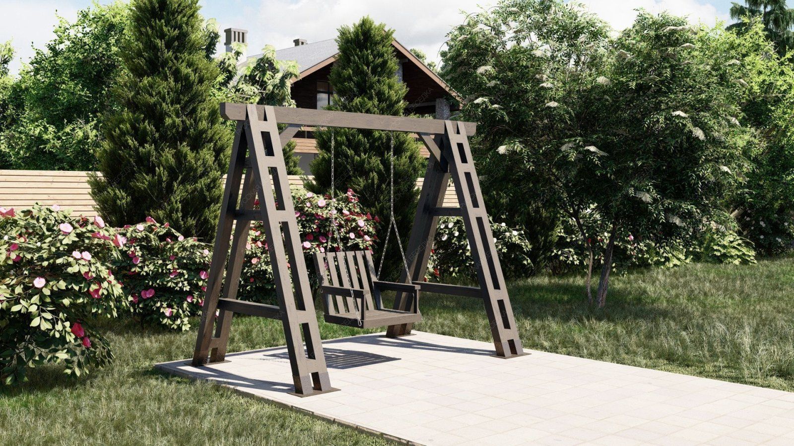 Эти качели идеально вписываются в ландшафт вашего участка, добавляя ему стильный и современный акцент. Они станут любимым местом для всей семьи, где можно провести время в общении и отдыхе.