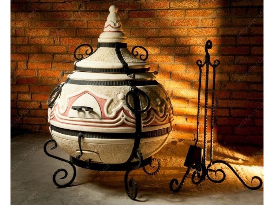 Необычный узор и резные ножки напоминают работы древних мастеров барокко или ренессанса. Такой тандыр украсит вам участок и станет незаменимым помощником в приготовлении пищи.