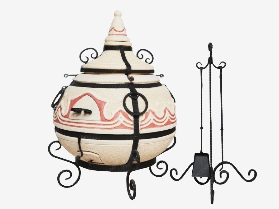 Такая печь изготовлена из высококачественной керамики. Она хорошо нагревается, скорость приготовления пищи гораздо выше чем на мангалах, а расход дров меньше. Конструкция тандыра обеспечивает равномерное распределение тепла по всей поверхности, что создаёт неповторимый вкус, который невозможно достичь с помощью традиционных методов готовки.