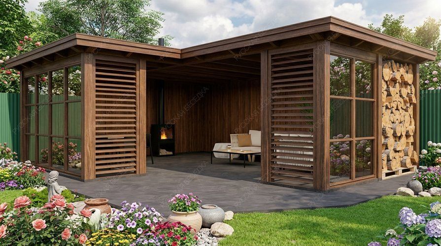 - Форма беседки: угловая