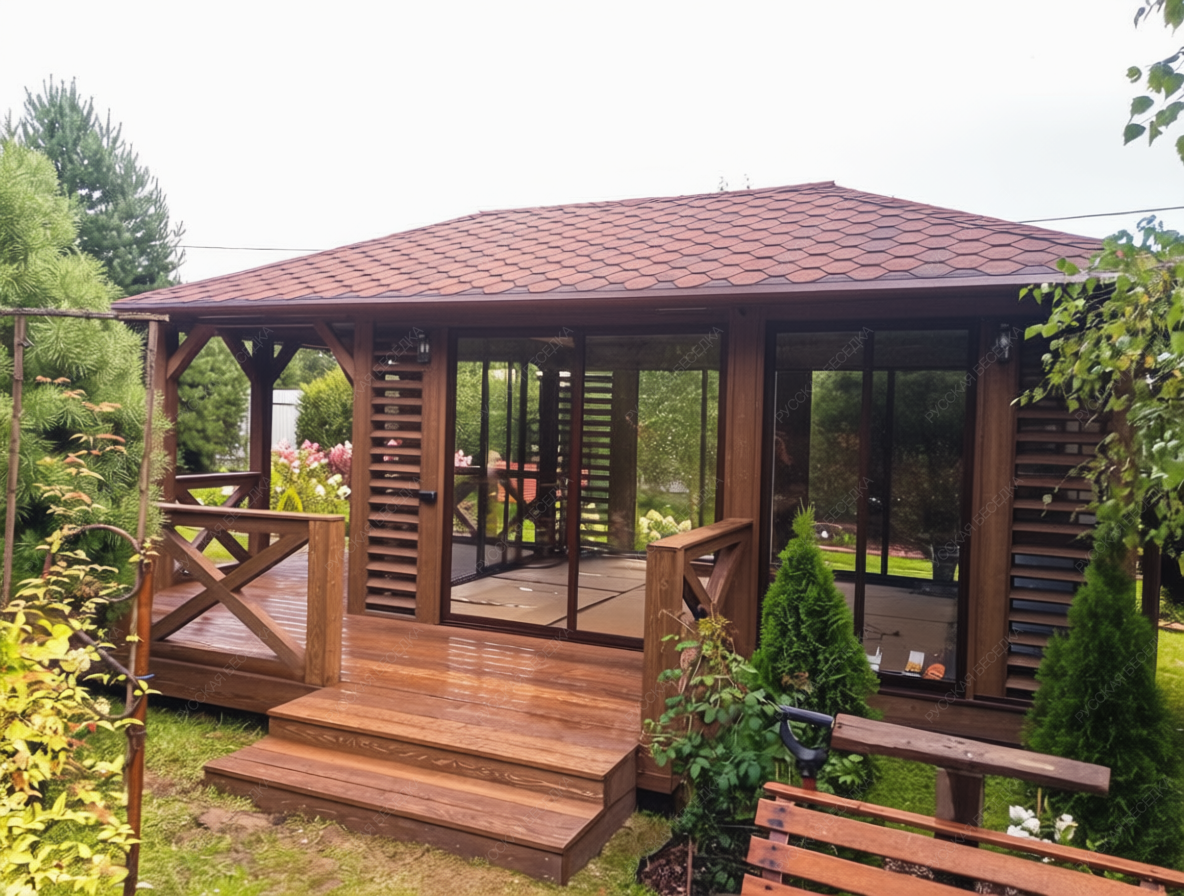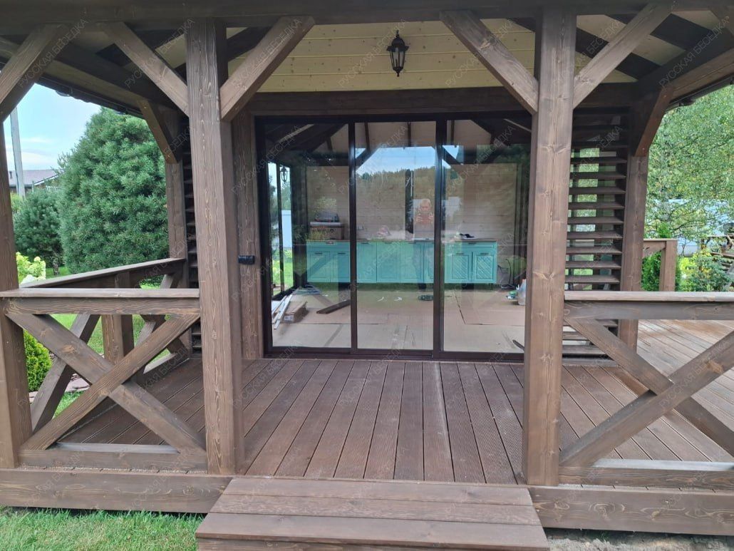 Беседка выполненная из лучших пород древесины, прослужит долгие годы и не потребует особого ухода и обслуживания. Специальные лакокрасочные материалы которые мы используем, предотвратят старение, гниение и заражение грибком конструкции кухни. Используемая огнебиозащита образует полупрозрачное полуматовое покрытие, стойкое к влаге, УФ-излучению, перепадам температуры и другим атмосферным воздействиям.