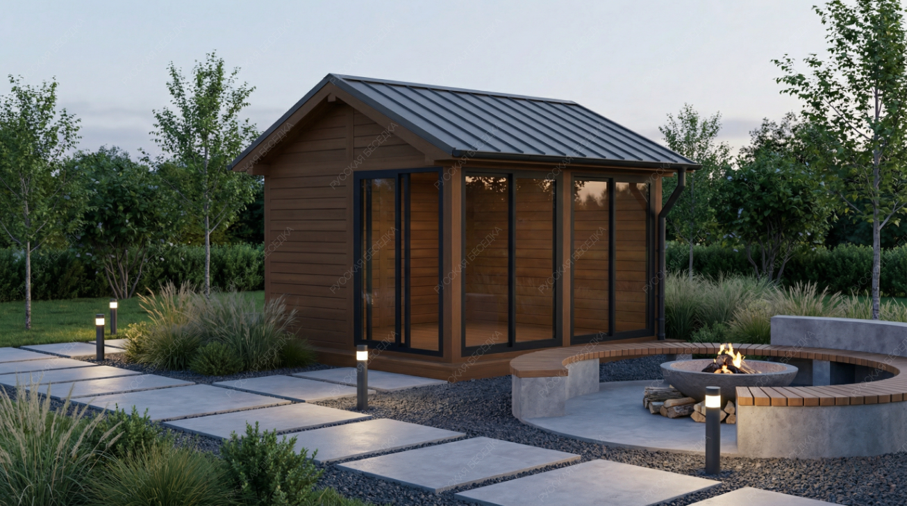 Застекленная беседка Врайтл с фальцевой кровлей