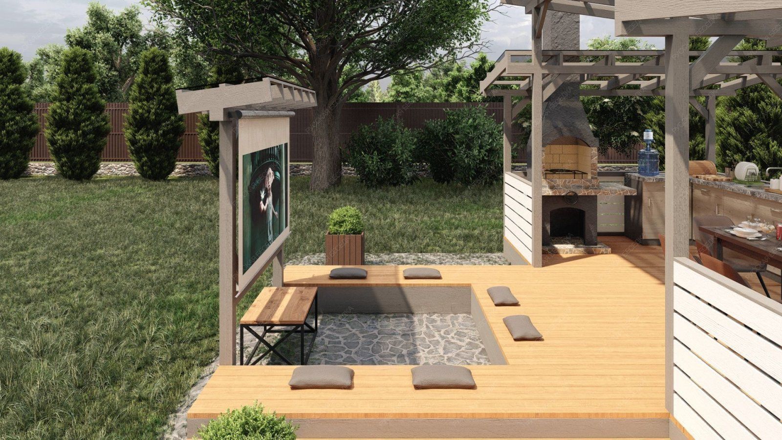 Отличительной особенностью зон отдыха является их многофункциональность: вы можете готовить на просторной веранде, организовать обеденную зону под навесом или в закрытой части, расположить летний кинотеатр под открытым небом, интегрировать в конструктив террасы бассейн или детскую площадку.